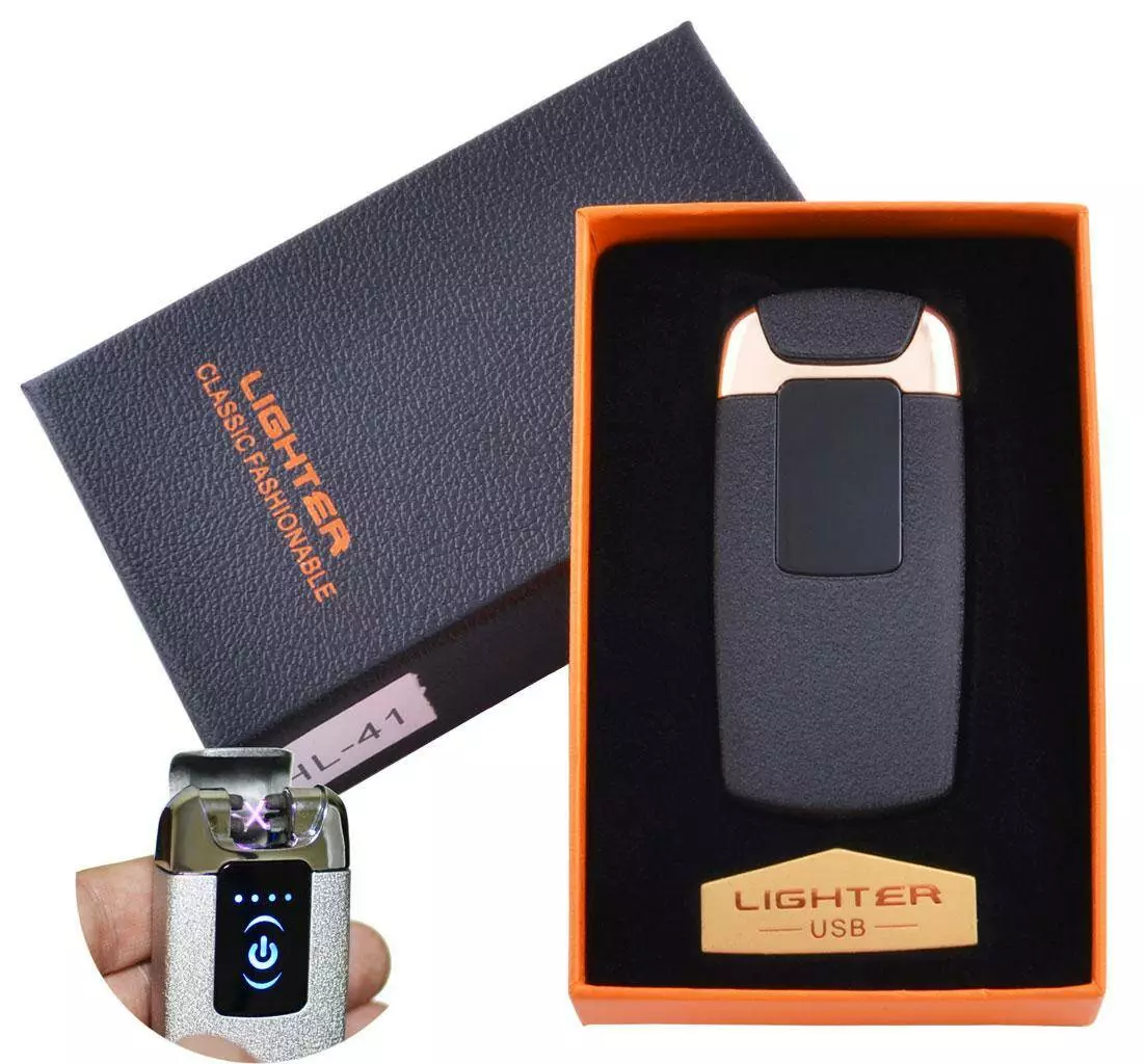 Электроимпульсная зажигалка в подарочной упаковке Lighter (Двойная молния, USB) №HL-41 Black