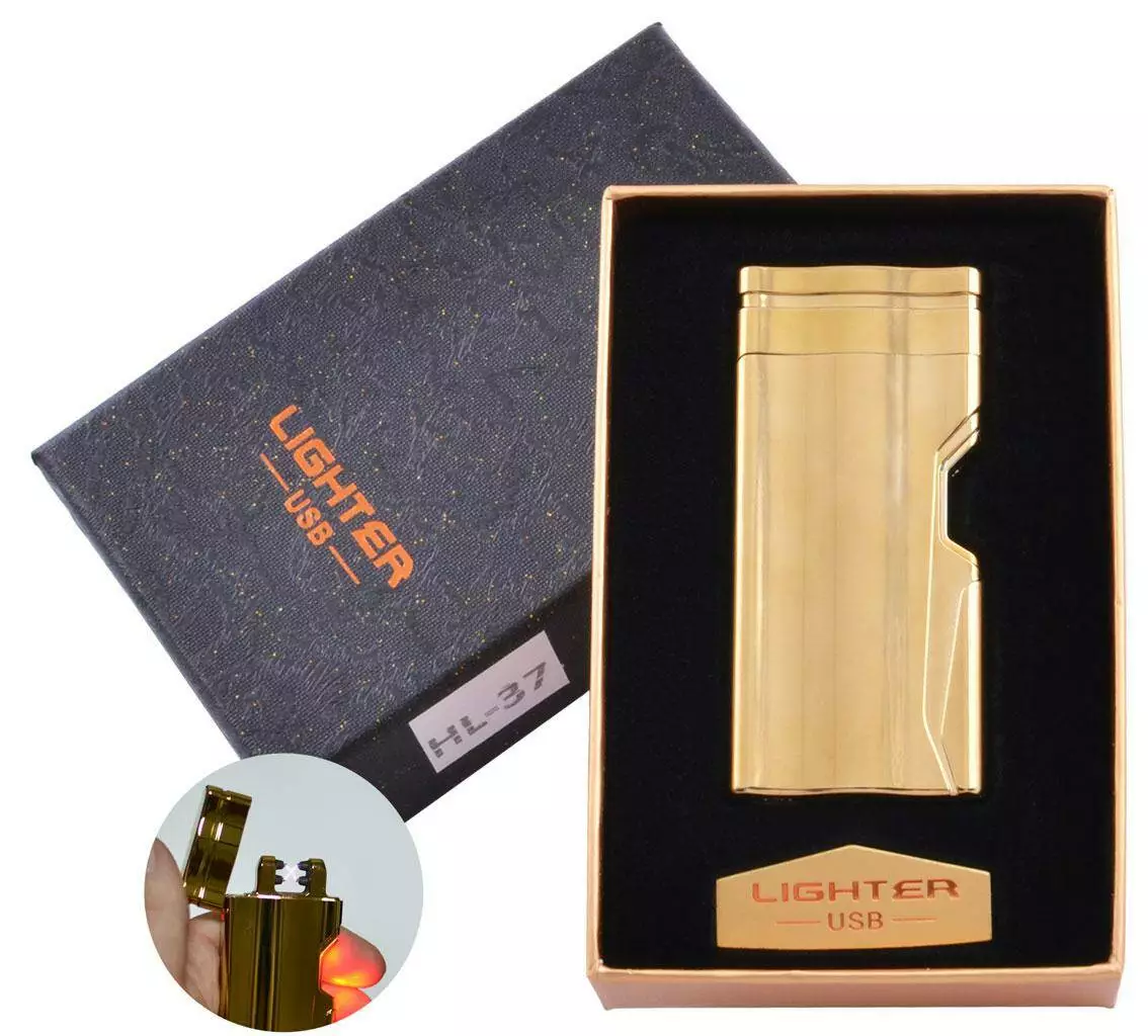Электроимпульсная зажигалка в подарочной упаковке Lighter (Двойная молния, USB) HL-37 Gold