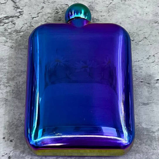 Стильная фляга объёмом 6 oz (≈180 мл) с эффектным радужным покрытием — идеальный аксессуар для тех, кто ценит оригинальность и практичность.