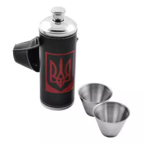 Фляга-термос из нержавеющей стали в кожаном чехле Украина + рюмки YT9