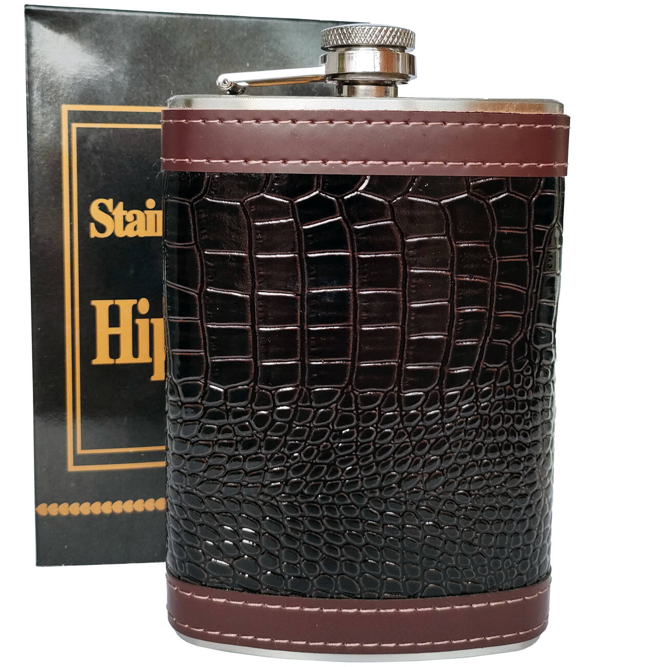 Фляга в кожаном чехле с тиснением под крокодила, 9 oz