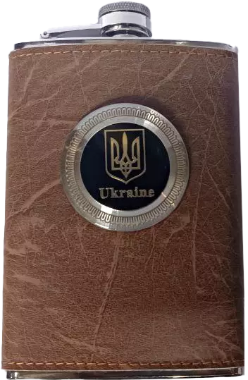 Фляга из пищевой нержавеющей стали (256 мл) обтянута кожей с набойкой Ukraine ???????? TB-9 коричневая