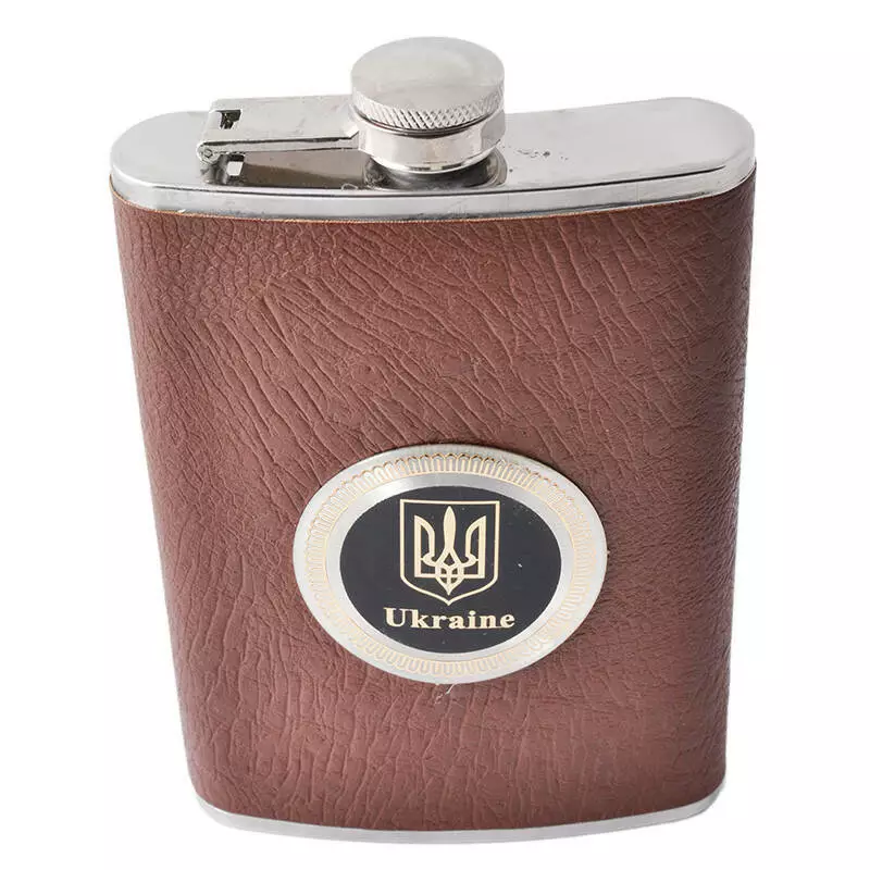 Фляга из пищевой нержавеющей стали обтянута кожей Украина (Коричневая ) F-179-8