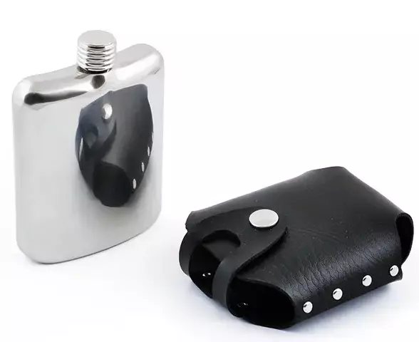 Фляга из пищевой нержавеющей стали в кожаном чехле PT61