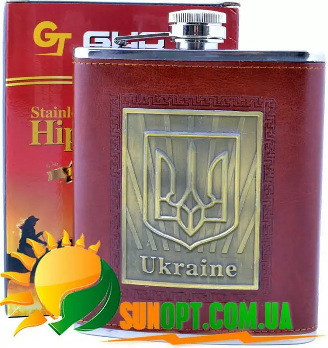 Фляга из нержавеющей стали обтянута кожей Украина