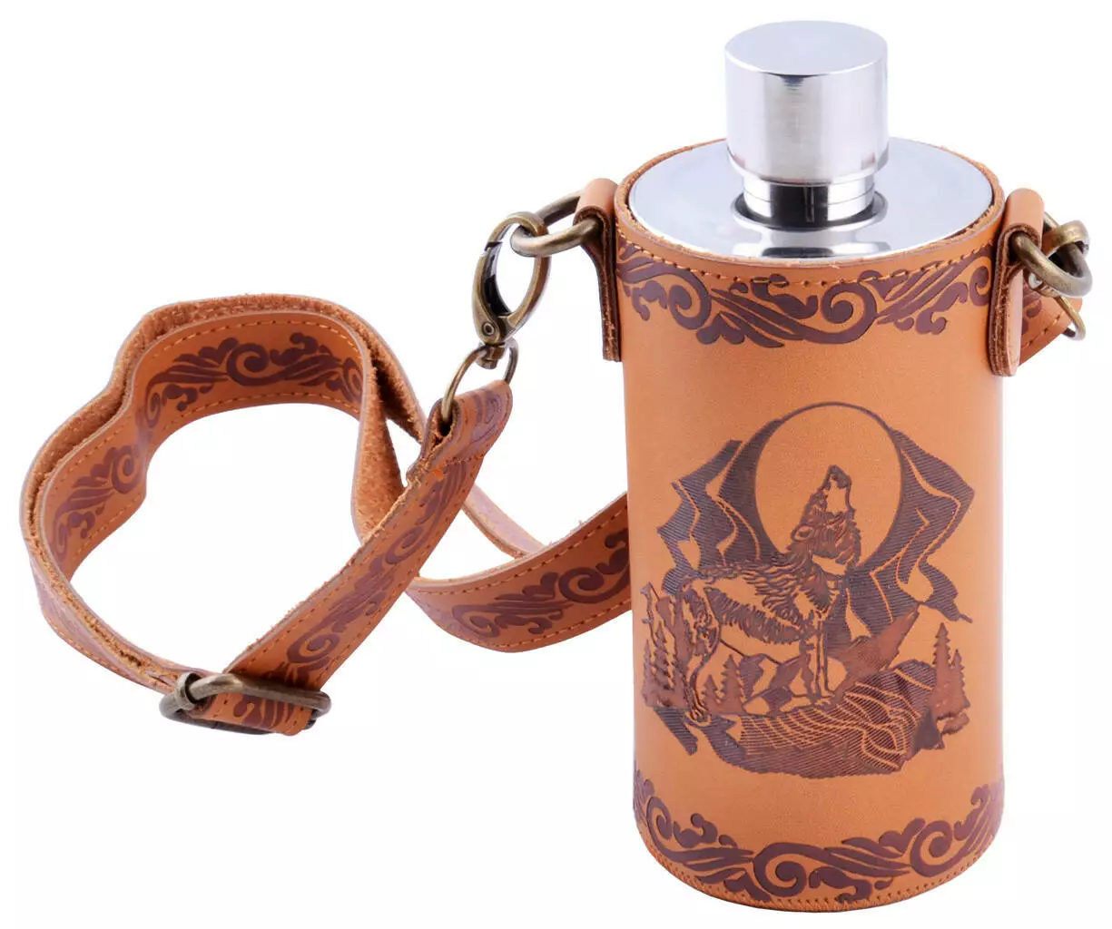 Фляга из нержавеющей стали в кожаном чехле Волк YT-18