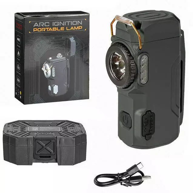 Фонарь зажигалка электроимпульсная ⚡️Li-Ion аккумулятор, индикация заряда, ЗУ Type-C, Box D50-3 SMD Black