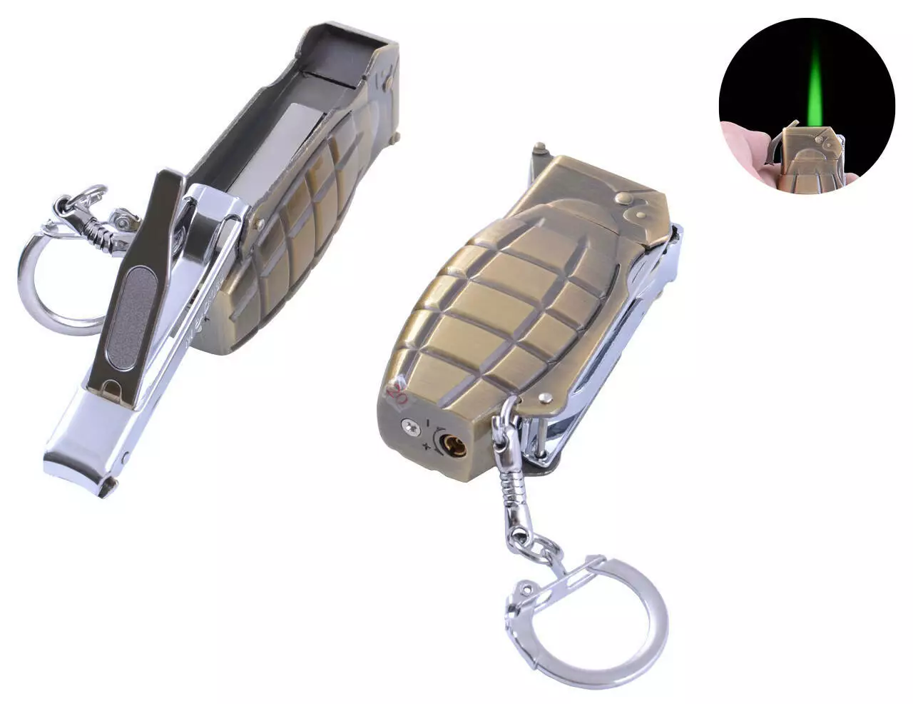 Зажигалка газовая-брелок Граната с кусачками (Турбо пламя) №4134-1