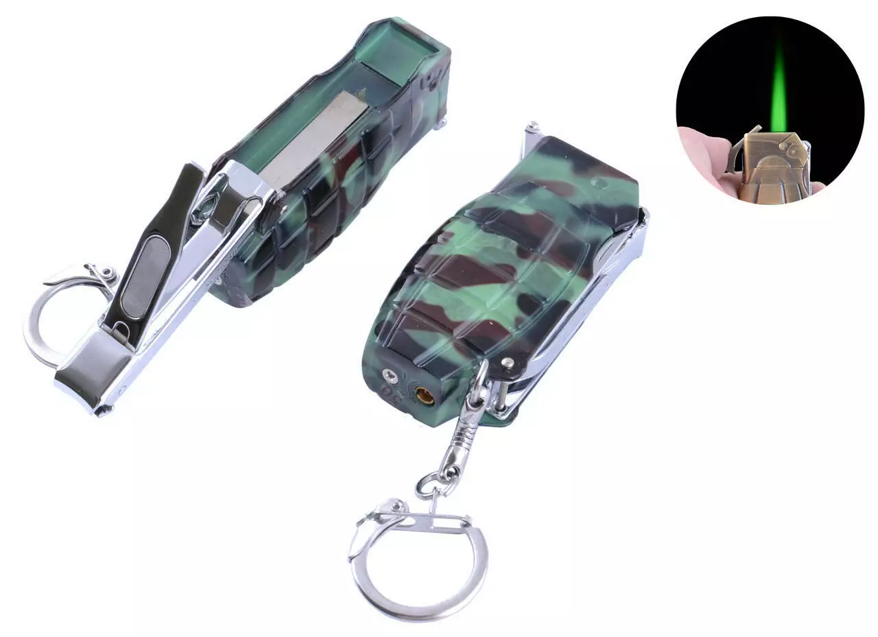 Зажигалка газовая-брелок Граната с кусачками (Турбо пламя) №4134-2