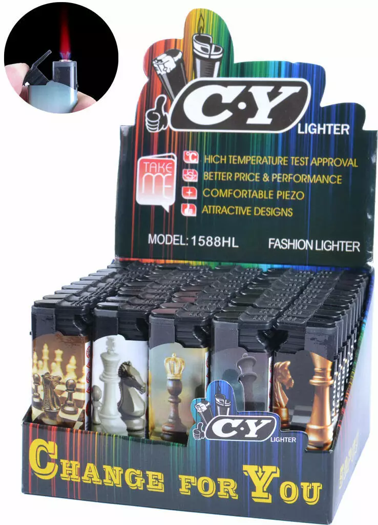 Зажигалка газовая пластиковая Шахматы (турбо пламя) №1588-1