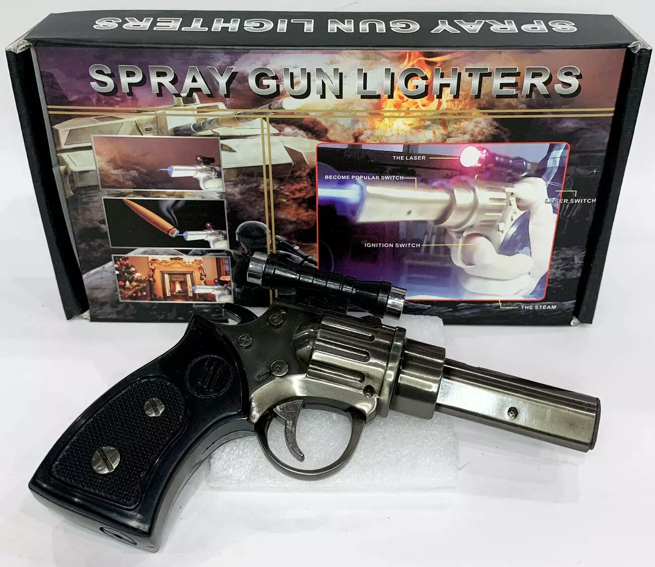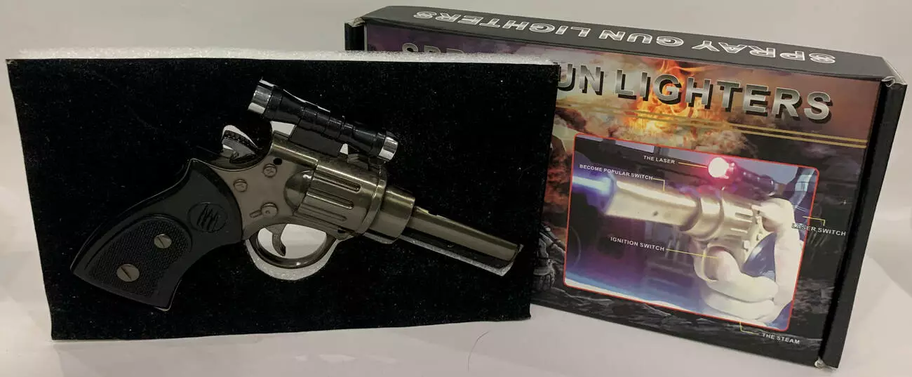 Зажигалка газовая пистолет Револьвер с лазером