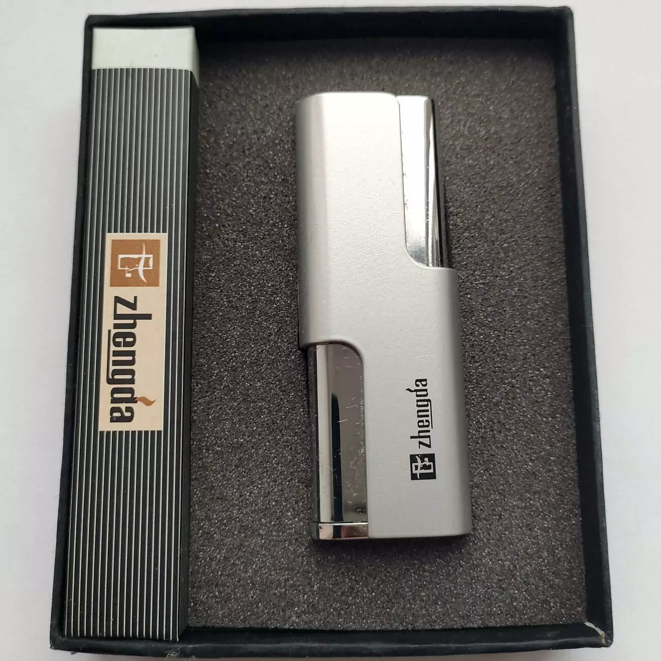 Элегантная и надёжная газовая турбо-зажигалка Zhengda Silver — современный аксессуар с лаконичным дизайном. Корпус выполнен из прочного металла с матовым серебристым покрытием и хромированными вставками, что придаёт зажигалке премиальный вид.