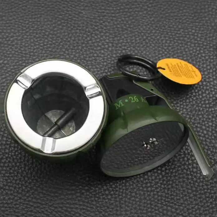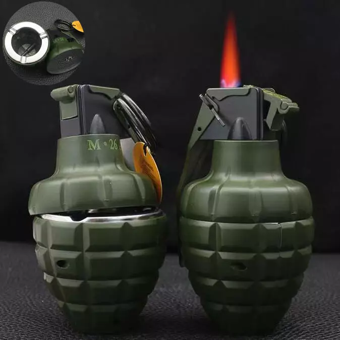 Оригинальная газовая зажигалка в форме гранаты М26 сочетает эффектный военный дизайн и практичность. Модель выполняет сразу две функции — зажигалка с турбо-пламенем и компактная встроенная пепельница.