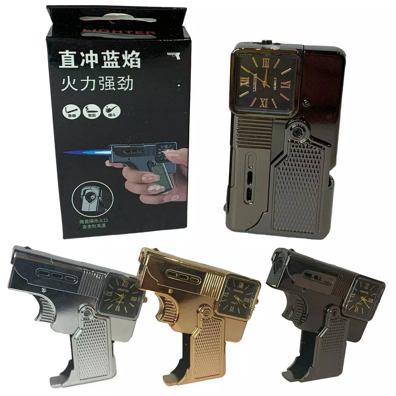Газовая зажигалка "Пистолет" с часами и турбо-пламенем ???????? HL-668
