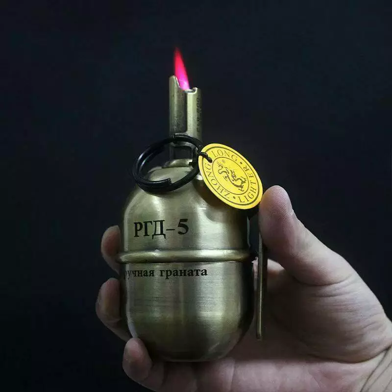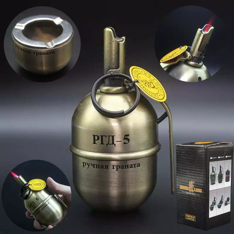 Необычная газовая зажигалка, выполненная в виде гранаты РГД-5, сочетает эффектный дизайн и практичность. Модель выполняет сразу две функции — зажигалка с турбо-пламенем и компактная пепельница.