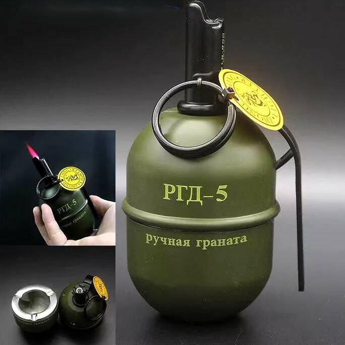 Необычная газовая зажигалка, выполненная в виде гранаты РГД-5, сочетает эффектный дизайн и практичность. Модель выполняет сразу две функции — зажигалка с турбо-пламенем и компактная пепельница.