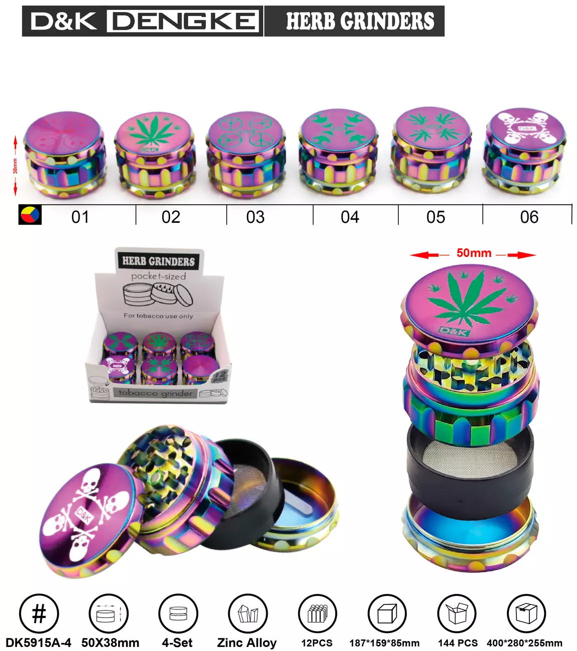 Гриндер D&K "Градиент, Растамаская тематика" ☘️ (четыре секции), 5,0см * 3,8см DK-5915-A4