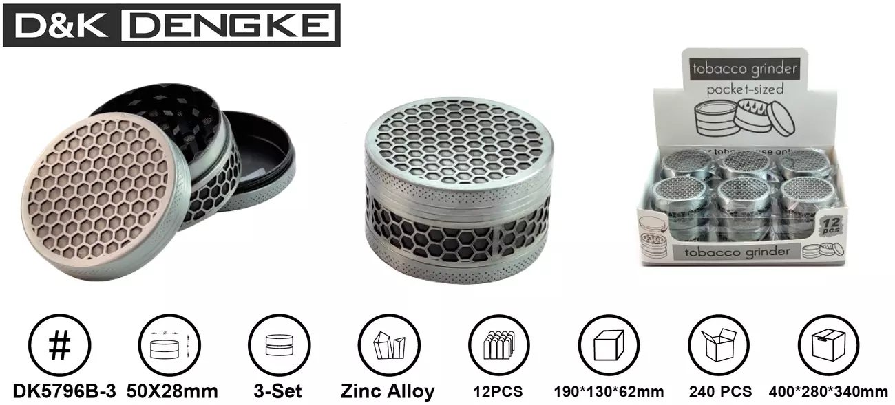 Гриндер D&K "Серебрянные соты" ☘️ (три секции), 5,0см * 2,8см DK-5796-B3