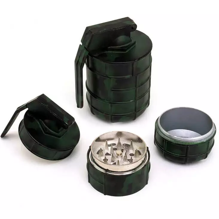 Гриндер в виде армейской гранаты — это не просто аксессуар, а эффектное сочетание дизайна, прочности и функциональности. Его необычная форма и камуфляжная расцветка делают его отличным выбором для ценителей военного стиля и нестандартных решений.