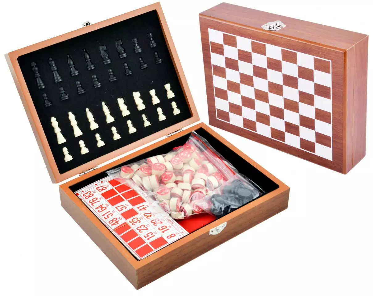 Игровой набор шахматы/лото, деревянная коробка 2519