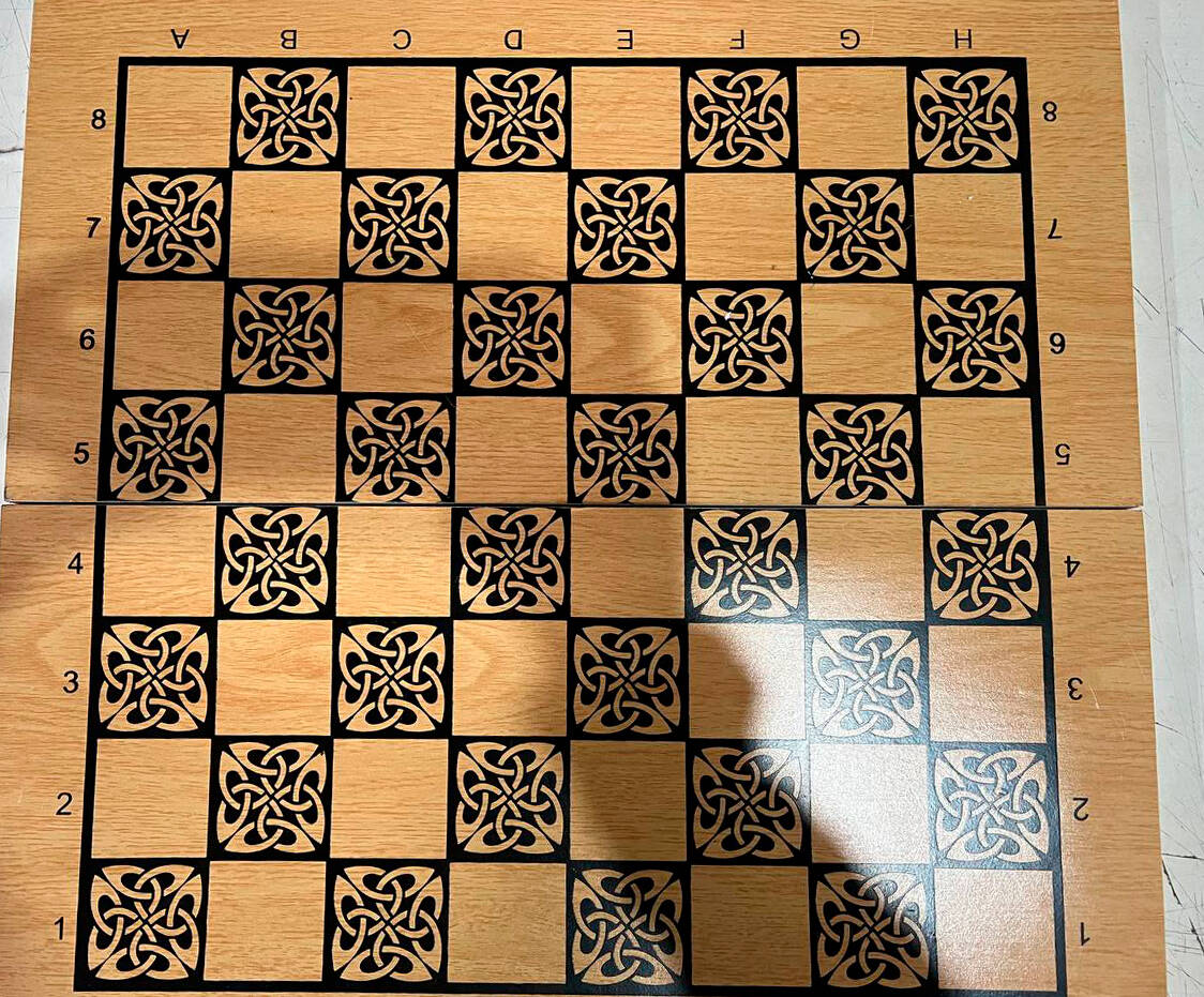 Внешняя сторона — шашечное поле с декоративным орнаментом.