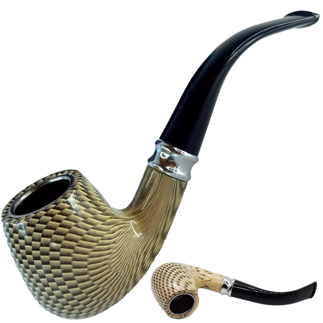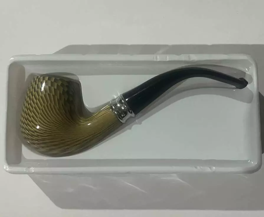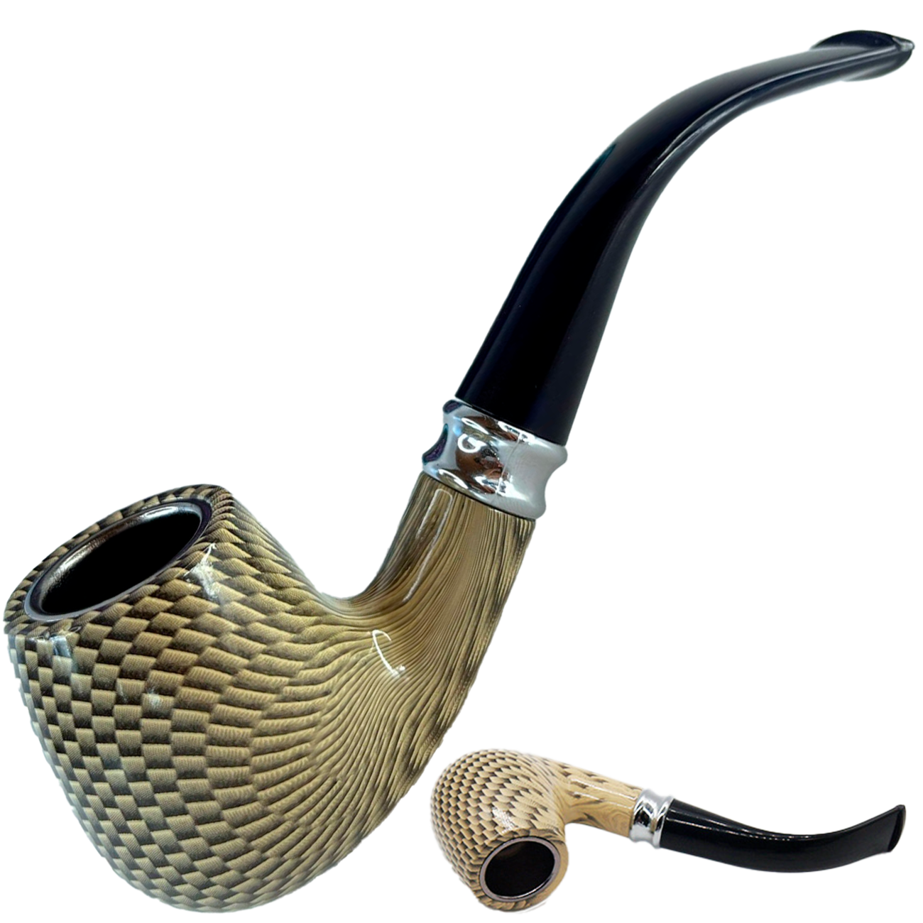 Курительная трубка CHANG FENG — элегантная модель с современным дизайном, сочетающая практичность и стиль. Чаша выполнена из бакелита с металлической вставкой и имеет выразительную фактурную поверхность в светло-бежевом оттенке с плетёным узором. Пластиковый мундштук удобно лежит в руке, легко снимается для очистки. Металлическая подставка придаёт трубке солидный вид и делает её удобной для хранения.