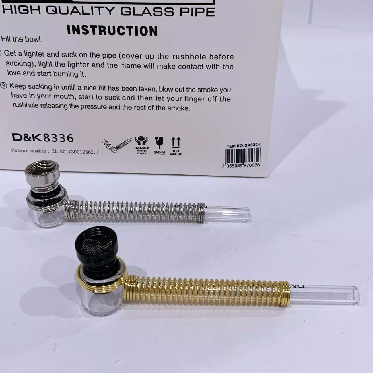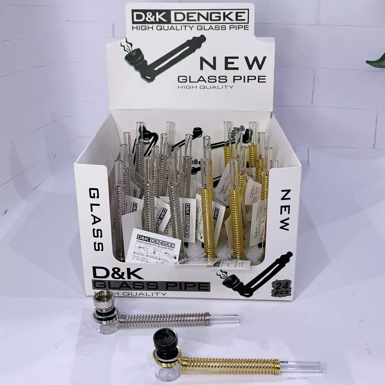 Стильная курительная трубка от бренда D&K Dengke сочетает эффектный дизайн и практичность. Прочная металлическая чаша обеспечивает долговечность, а прозрачный стеклянный корпус позволяет контролировать процесс курения. Металлическая спиральная ручка снижает нагрев и придаёт трубке современный внешний вид.