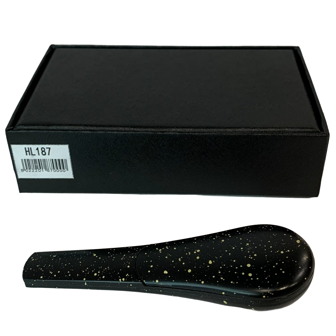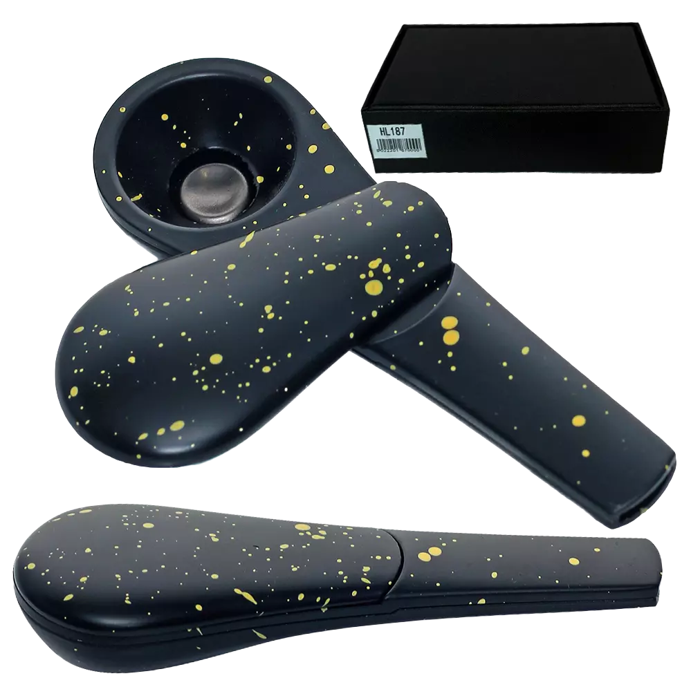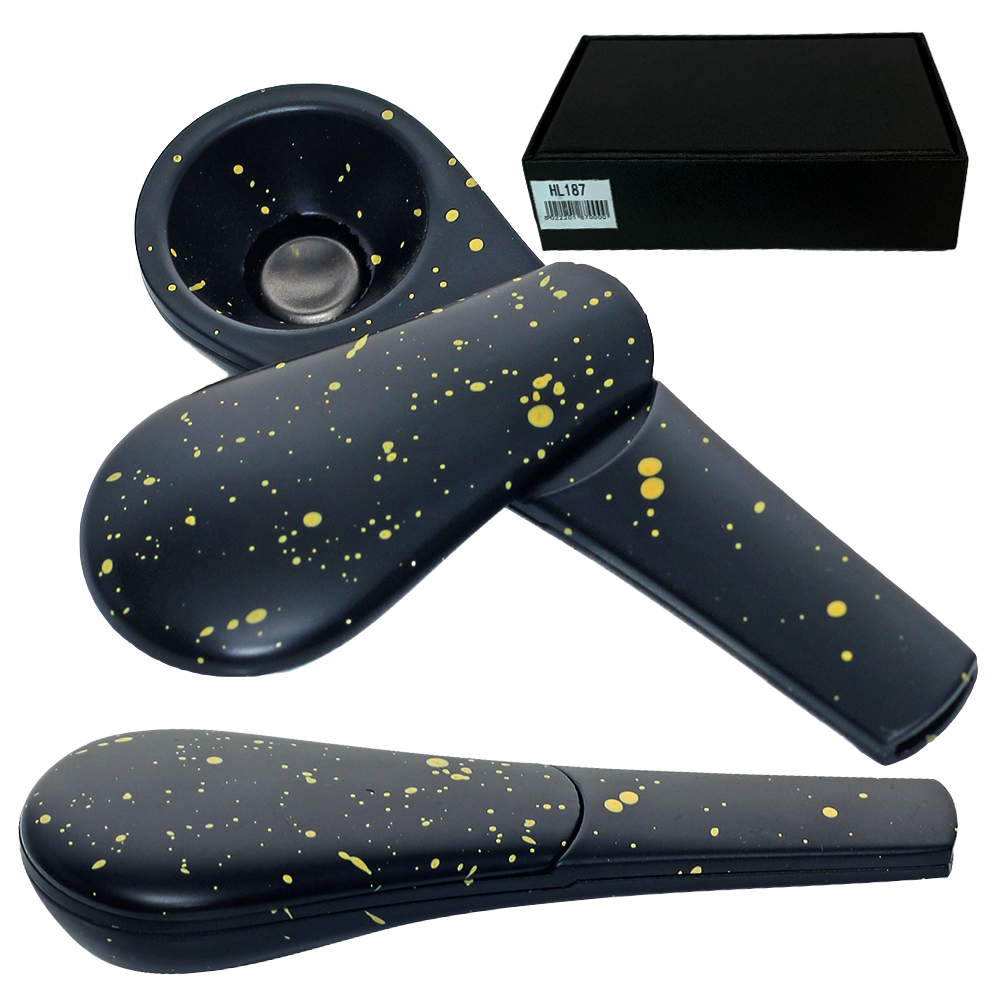 Дизайнерская курительная трубка HL187 выполнена в форме удобной ложки. Матовая чёрная поверхность с эффектными золотыми брызгами придаёт аксессуару премиальный вид и делает его заметным элементом коллекции.