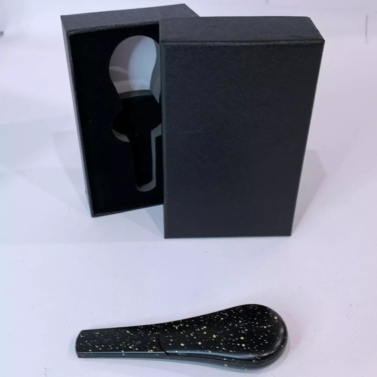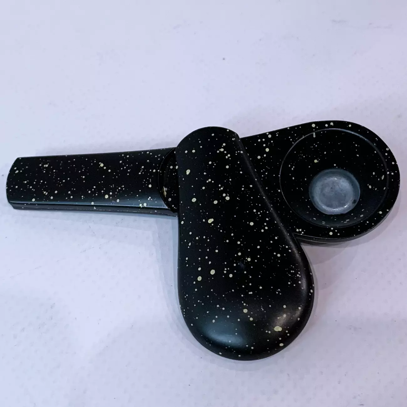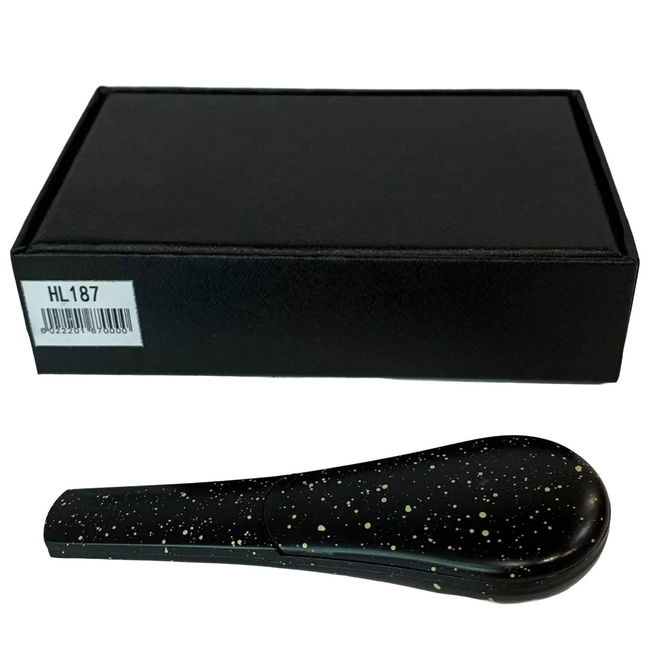 Дизайнерская курительная трубка HL187 выполнена в форме удобной ложки. Матовая чёрная поверхность с эффектными золотыми брызгами придаёт аксессуару премиальный вид и делает его заметным элементом коллекции.