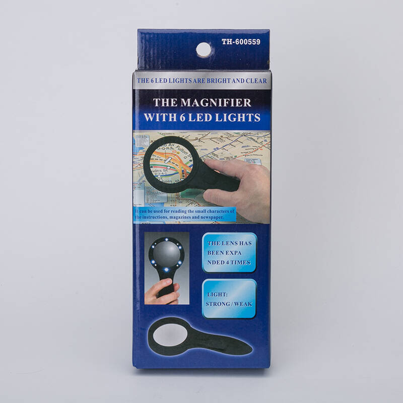 Лупа ручная с LED и UV-подсветкой, увеличение 4x, диаметр линзы 65 мм TH-600559