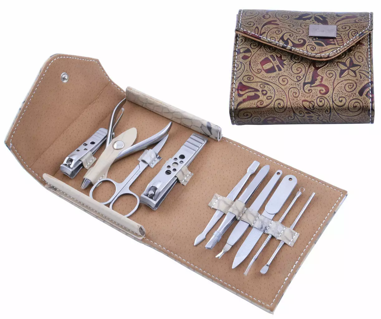 Маникюрный набор - Ножницы- Кусачки- Щипчики 2 шт- Пилочка для ногтей- Пушер- Пинцет- Тример- Кюретка- Рашпиль