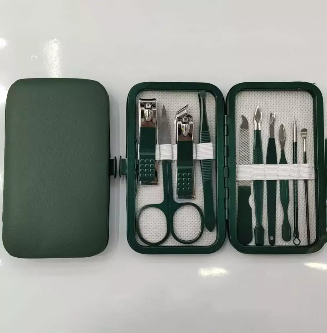 Маникюрный набор 10 предметов в зеленом футляре 6910