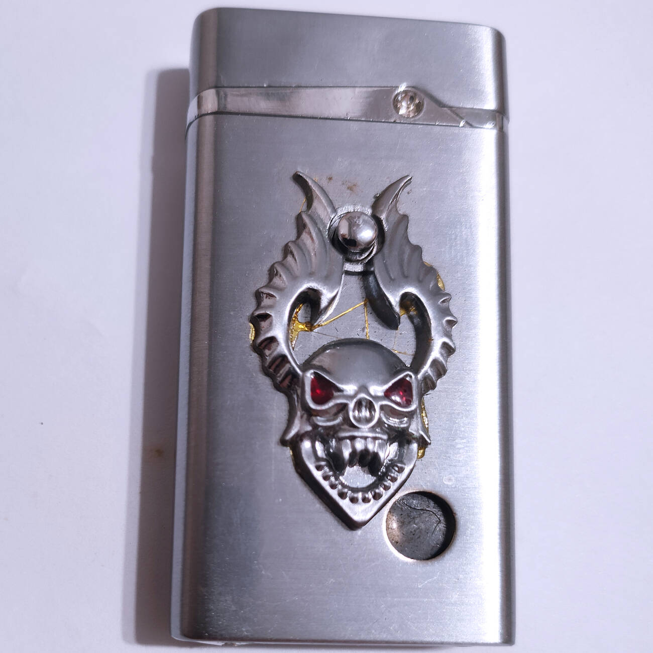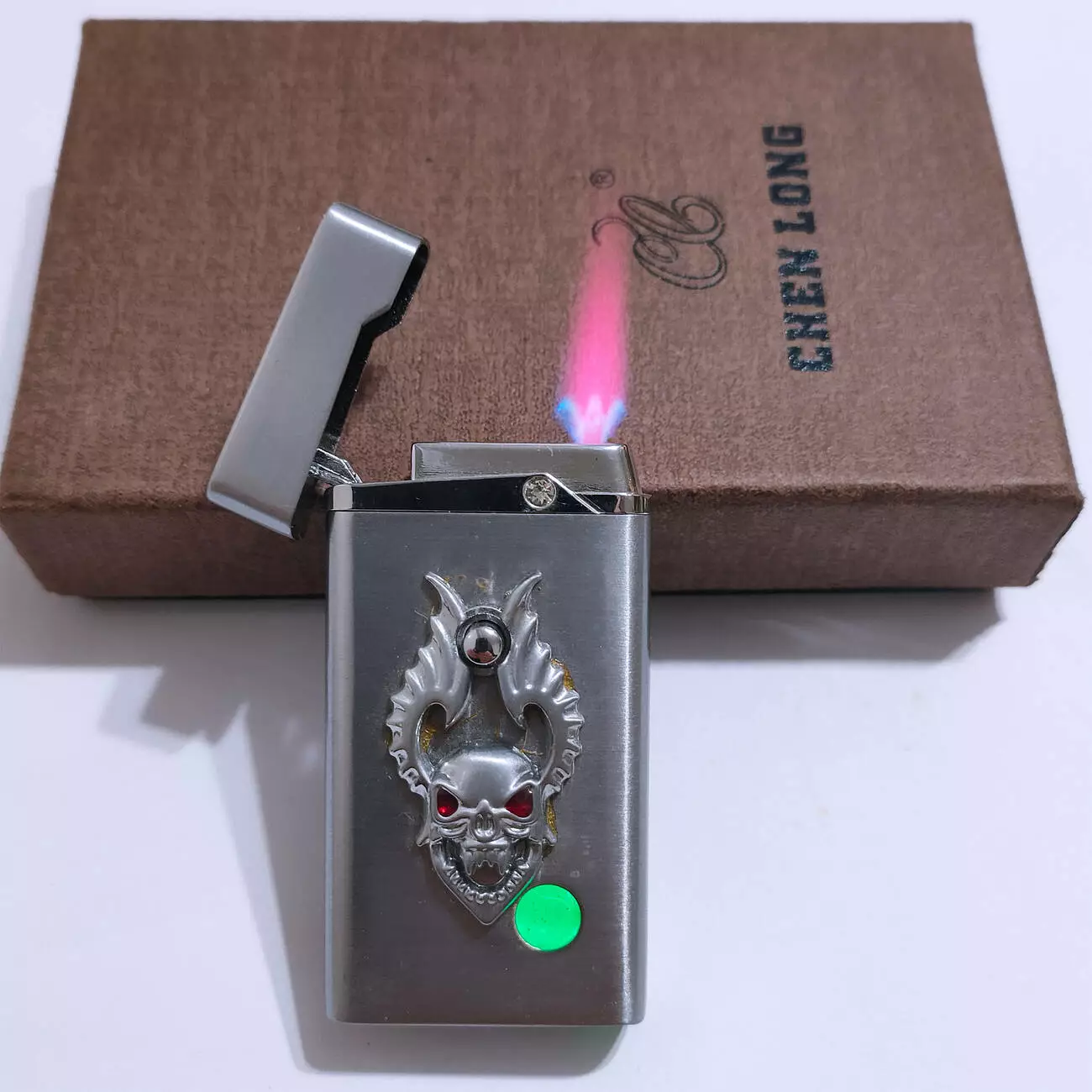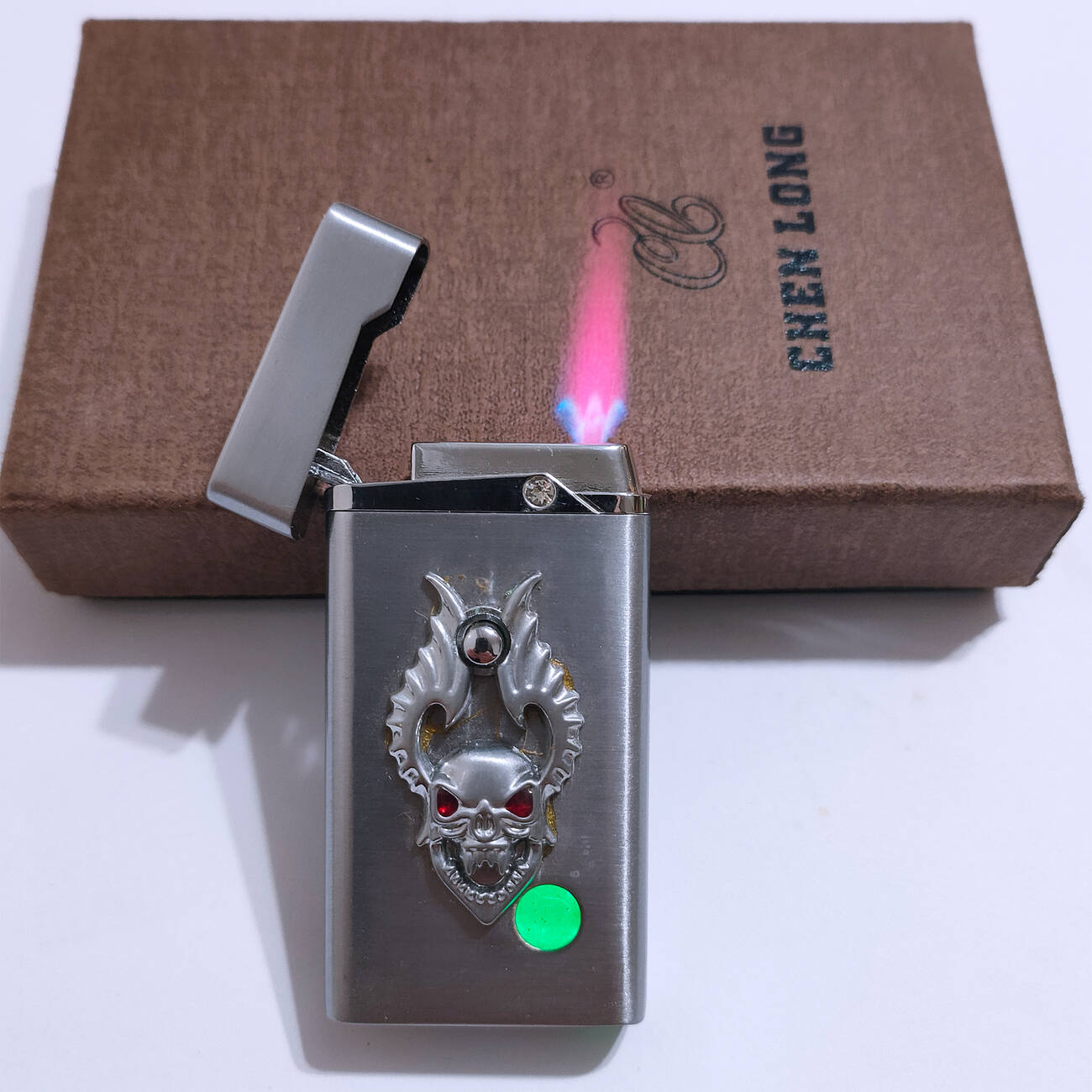 Стильная металлическая зажигалка Chen Long с мощным турбо-пламенем и брутальным дизайном. Корпус выполнен из металла и украшен декоративной накладкой в виде черепа, что делает аксессуар ярким и запоминающимся.