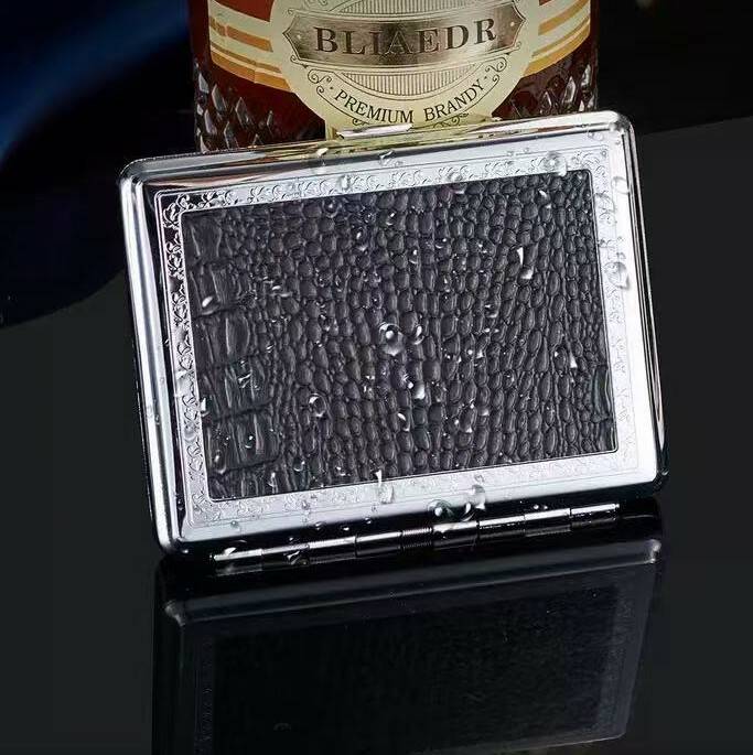 Металлический портсигар на 20 сигарет с тиснением под кожу HL-704-2