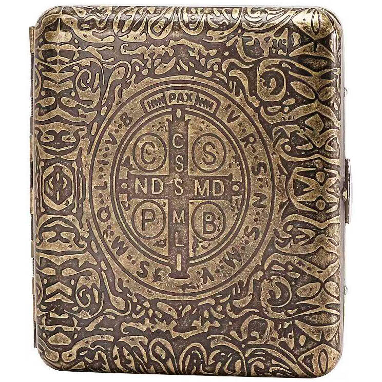 Металлический портсигар с гравировкой «Крест святого Бенедикта» HL-702 / 7023