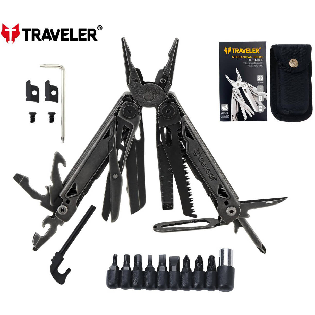 Надёжный и универсальный инструмент для повседневных задач, путешествий, кемпинга и ремонта. Мультитул Traveler Mechanical Pliers Plus объединяет в себе 36 функций и изготовлен из прочной нержавеющей стали, обеспечивающей долговечность и устойчивость к коррозии.