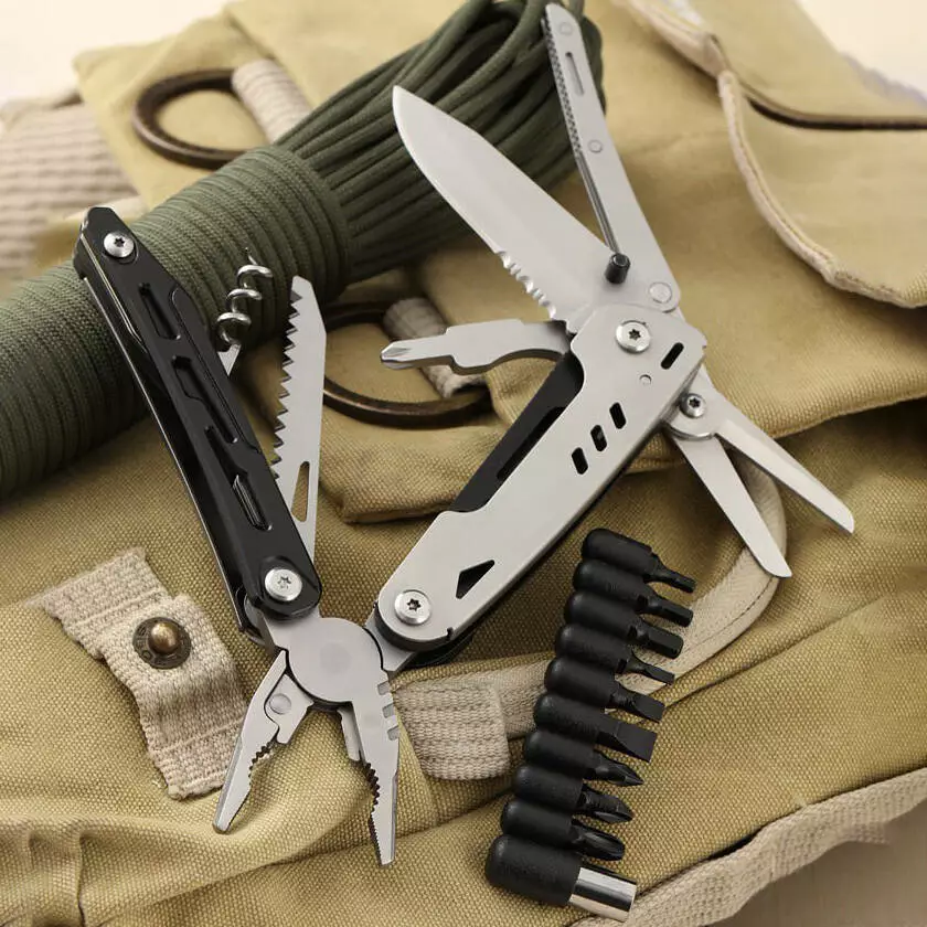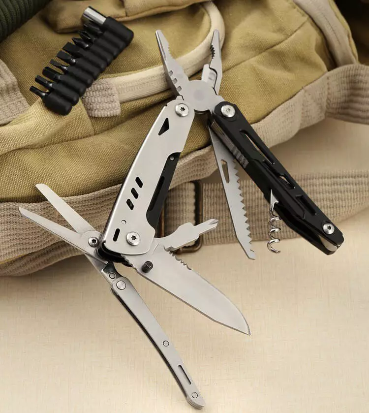 - Функции: включает набор инструментов, таких как нож, отвертки, плоскогубцы, открывалка для бутылок, ножницы и другие полезные элементы.