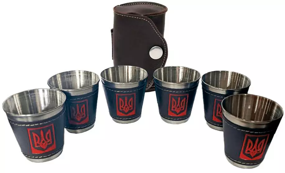 Набор рюмок обтянутые кожей в кожаном чехле Украина 6 шт по 75 мл JB-01