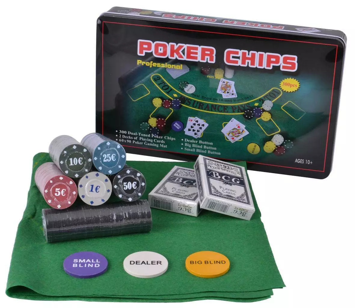 - Фишки с номиналом 1, 5, 10, 25, 50 + Dealer, Big Blind, Small Blind