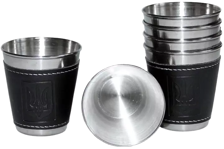 Набор из 6 стальных стопок (рюмок) Украина ???????? 30мл в чехле D401
