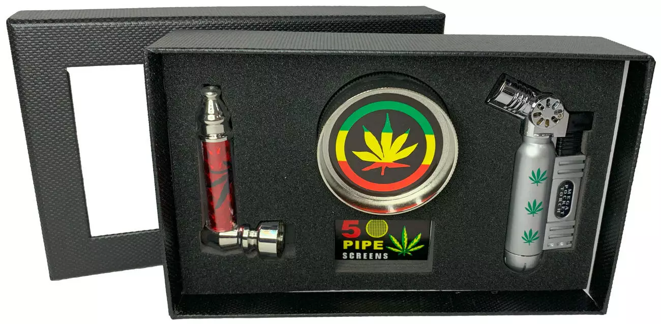 Набор для курения 4в1 'Legalize ☘️' Гриндер, Трубка, Сетки, Зажигалка HL-555-2