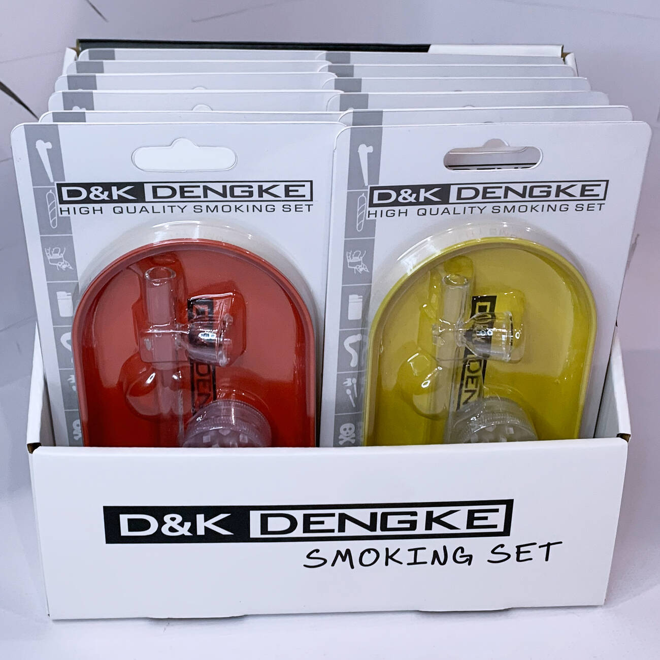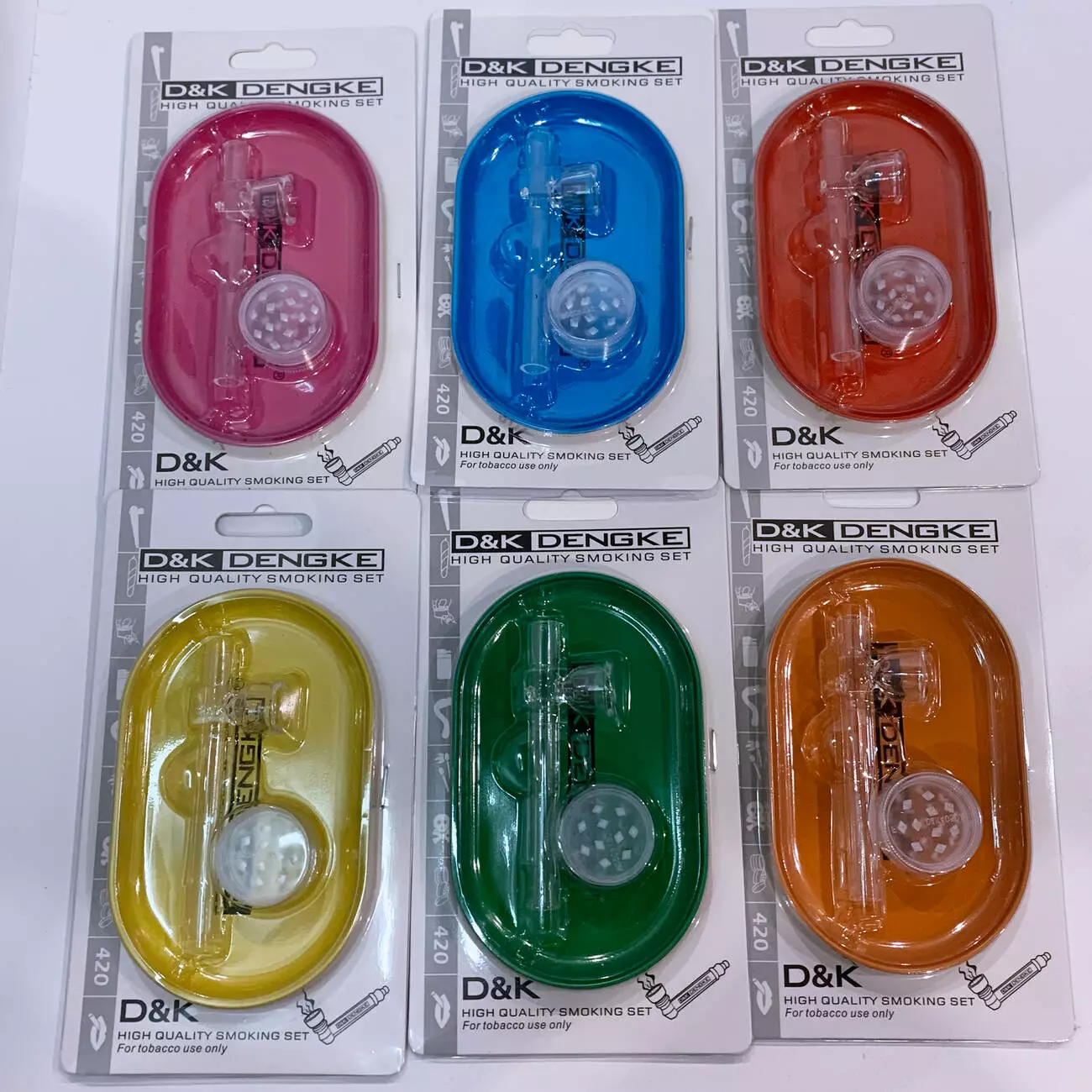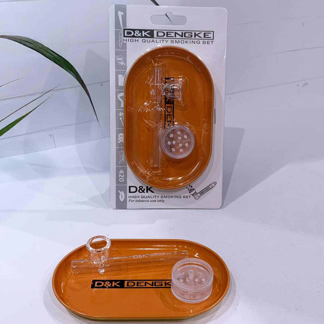 Компактный набор D&K DENGKE — удобное решение для хранения и использования аксессуаров для курения. Все элементы размещены на прочном цветном подносе с прозрачной крышкой, который защищает содержимое от пыли и повреждений и эффектно смотрится на витрине.