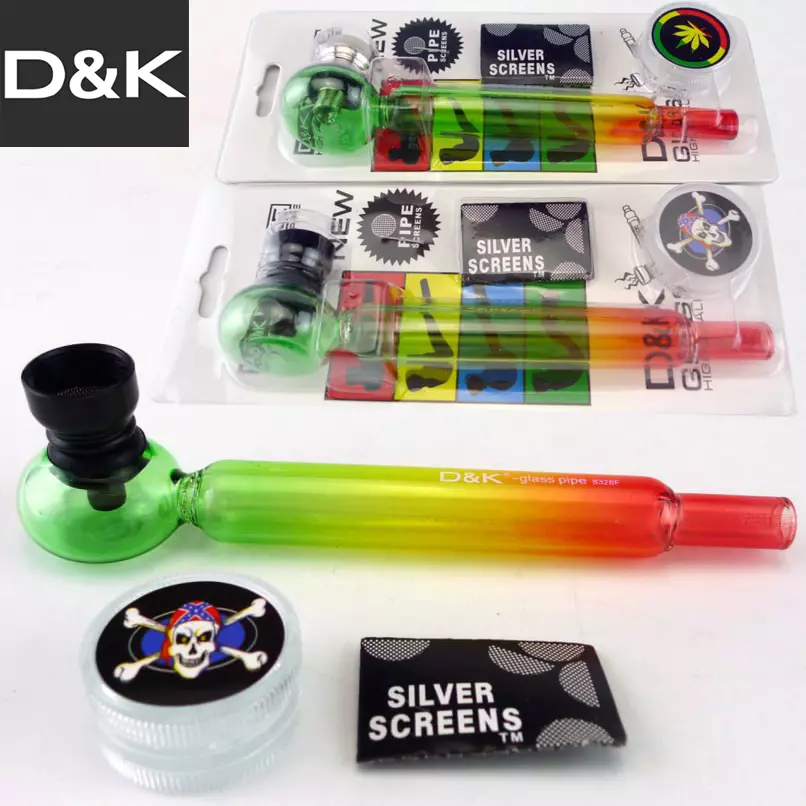Набор для курения D&K DK8328FA — это стильный комплект в яркой упаковке, включающий всё необходимое для удобного курения. В составе: стеклянная трубка длиной 140 мм, съёмная металлическая чаша, набор сеток Silver Screens и пластиковый гриндер с декоративной крышкой (череп, лист и т.д.).