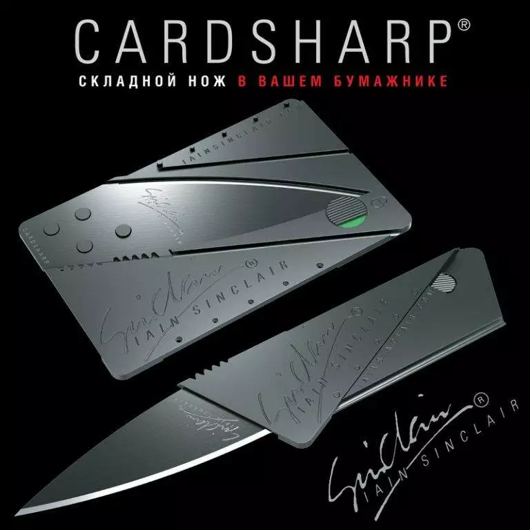 Нож-кредитка CardSharp - супер острый, ультра легкий нож для разрезания нетвердых материалов: дерева, картона, кожи, резины, для нарезания фруктов, овощей, хлеба, рыбы и мяса. Очень удобный для кемпинга, туризма, рыбалки, охоты, дайвинга, а также для самозащиты.