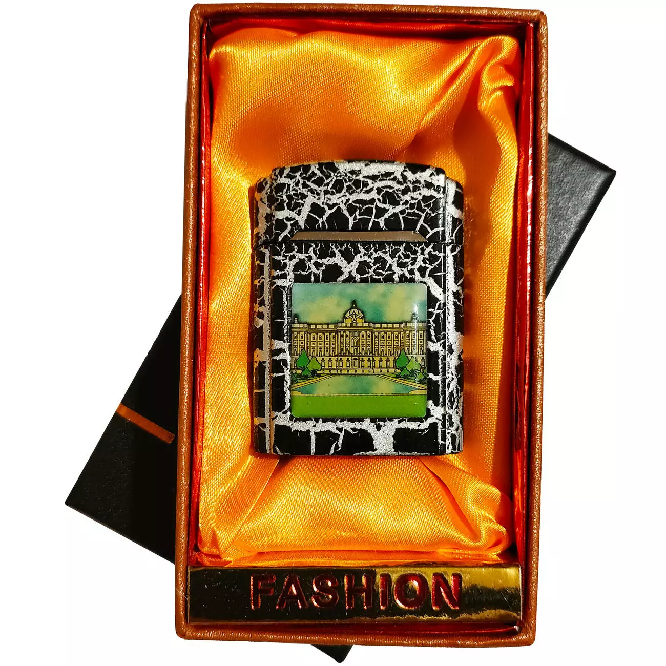 Оригинальная газовая зажигалка с турбо-пламенем — стильный и практичный аксессуар, который идеально подойдёт как для личного пользования, так и в качестве подарка. Корпус выполнен из металла с эффектным растрескавшимся покрытием и декоративной вставкой с изображением архитектурного фасада.