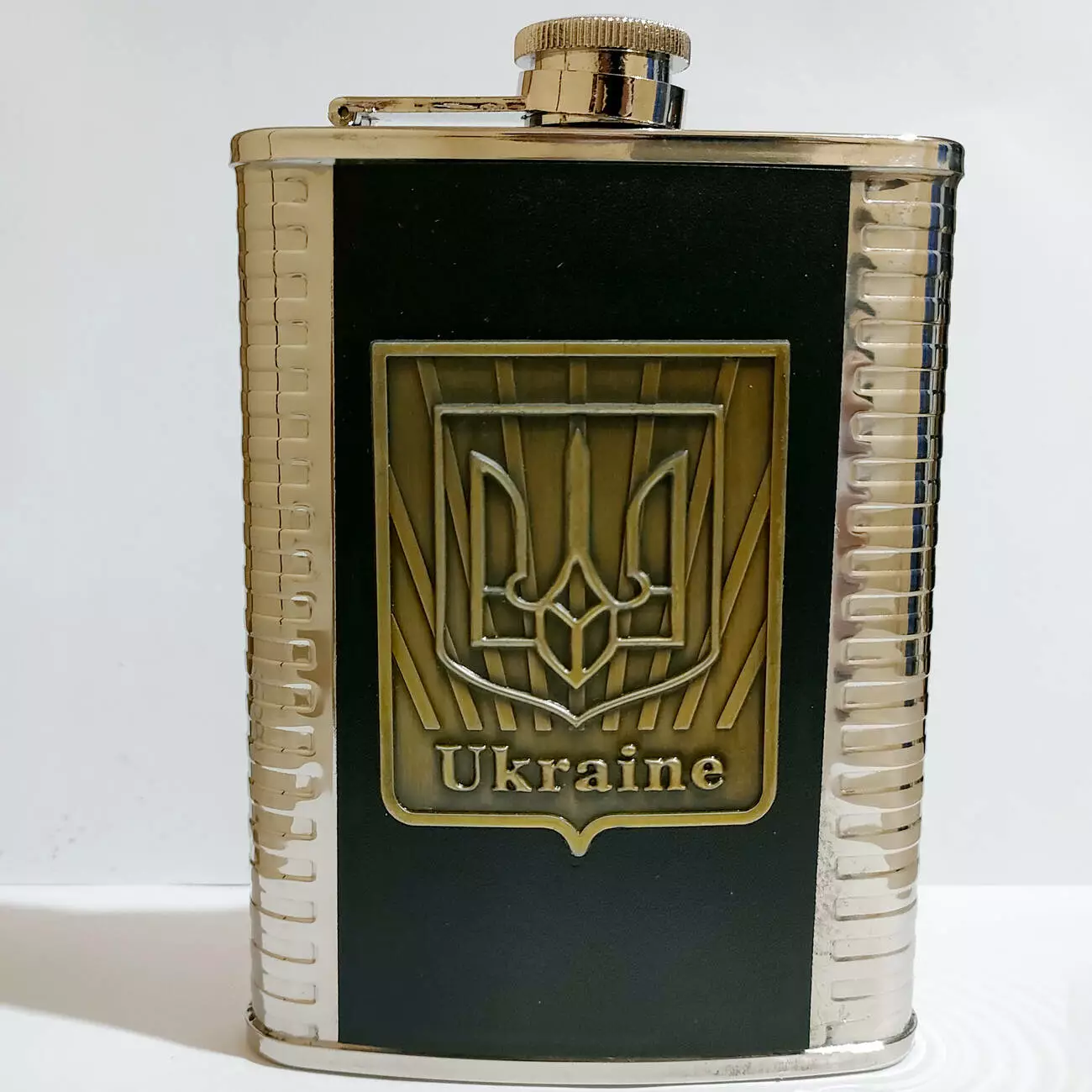 Патриотическая фляга с гербом Украины и надписью "Ukraine" (8 oz) — стильный и практичный аксессуар, который подойдёт как для личного пользования, так и в подарок.