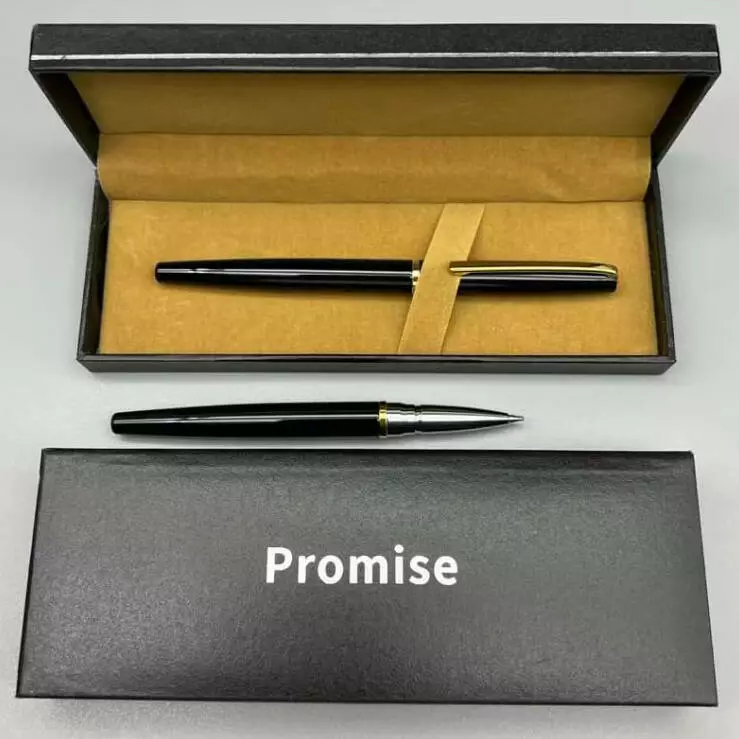 Элегантная подарочная ручка Promise — стильный аксессуар, созданный для тех, кто ценит классику и утонченность. Черный корпус с золотистым декоративным клипом подчеркивает солидность и безупречный вкус владельца.