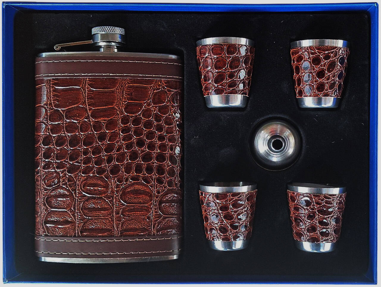 Подарочный набор фляга 9 унций + 4 рюмки по 30 мл + воронка TZ-51-4