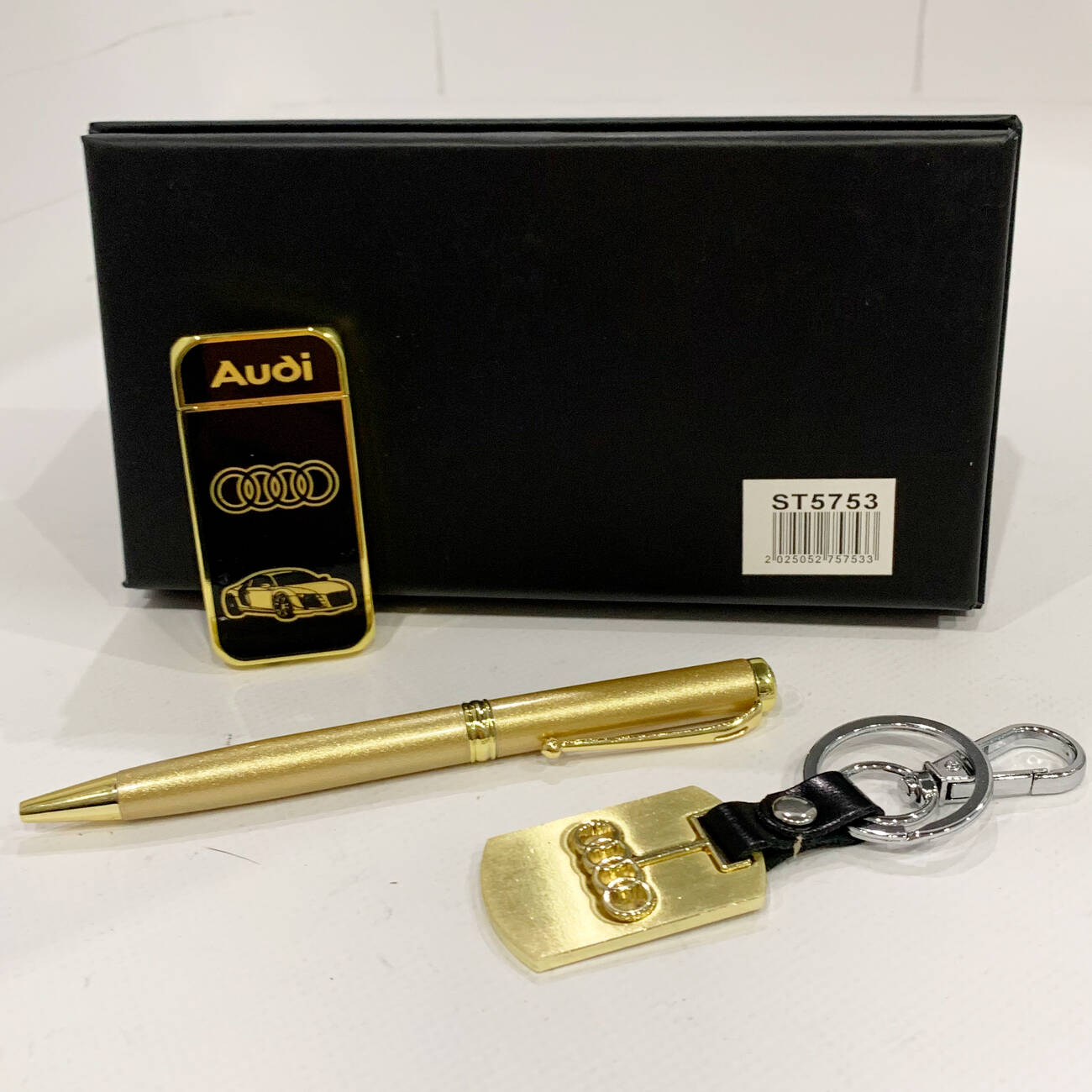 Элегантный мужской аксессуарный комплект, созданный в стиле знаменитого автомобильного бренда Audi. Все элементы набора выполнены в едином дизайне и упакованы в подарочную коробку, что делает его отличным вариантом для стильного мужского подарка.