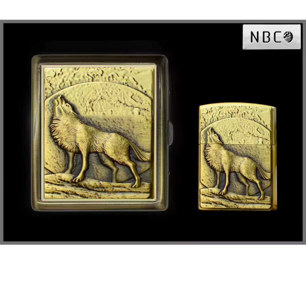 Эффектный подарочный набор, включающий зажигалку и портсигар с объемным 3D-дизайном. На обеих вещах изображён воющий волк на фоне луны — символ силы, свободы и независимости.